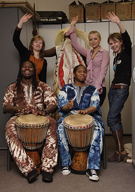 поздравление сотрудниц компании с 8 Марта в офисе заказчика.